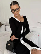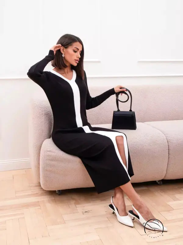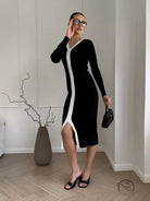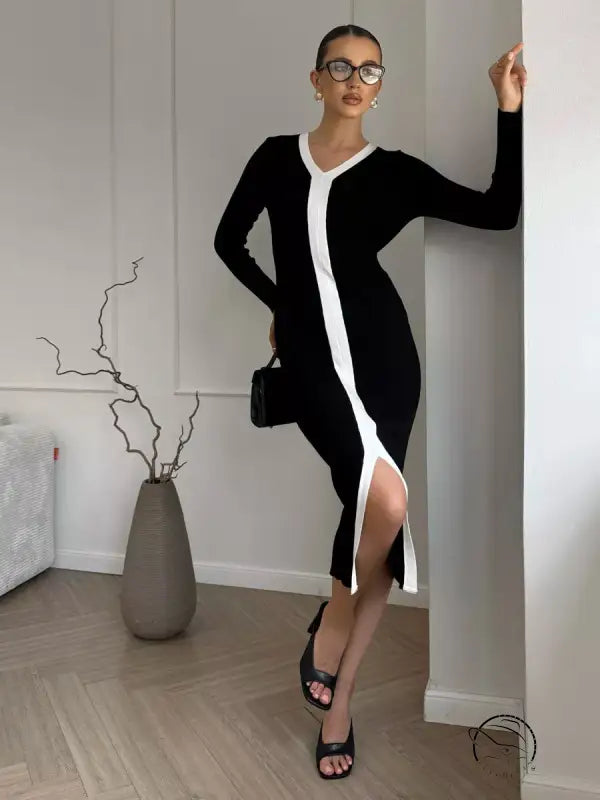 Black & White Knitted Slim Dress