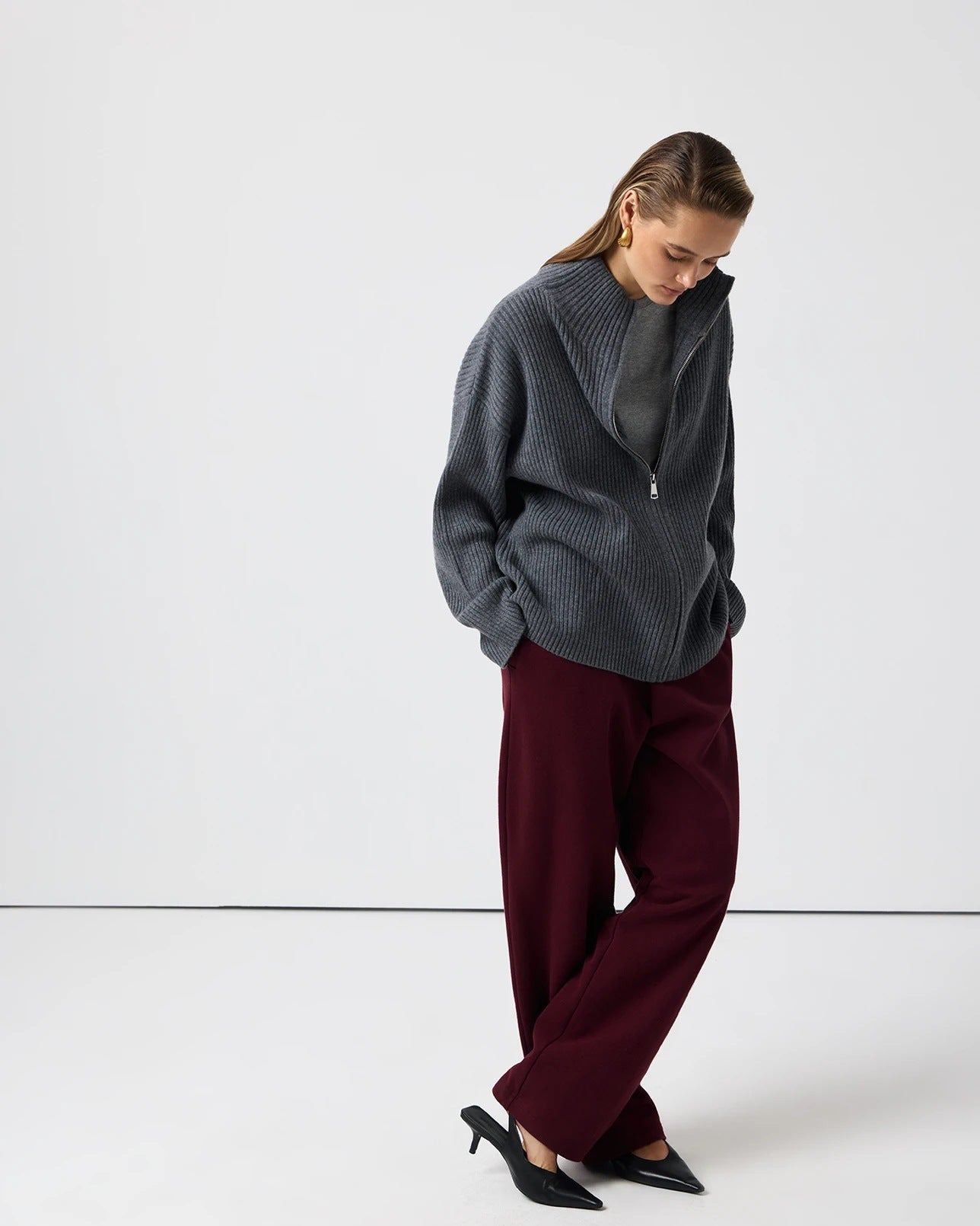 Elevate your layering game with this refined wool cardigan featuring a distinctive half-high collar and smooth zipper closure. Crafted from premium wool, it delivers exceptional warmth and timeless sophistication for any occasion.