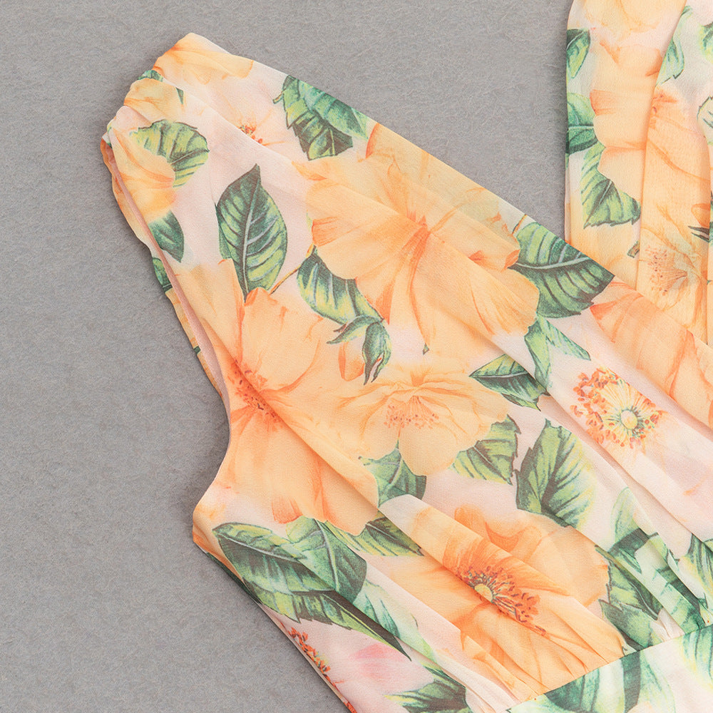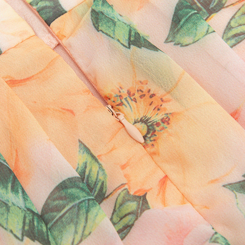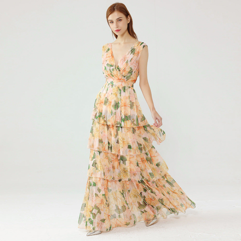 Dress Summer Retro Spaghetti Straps Sleeveless Floral Printed Cake Layer Dress Women