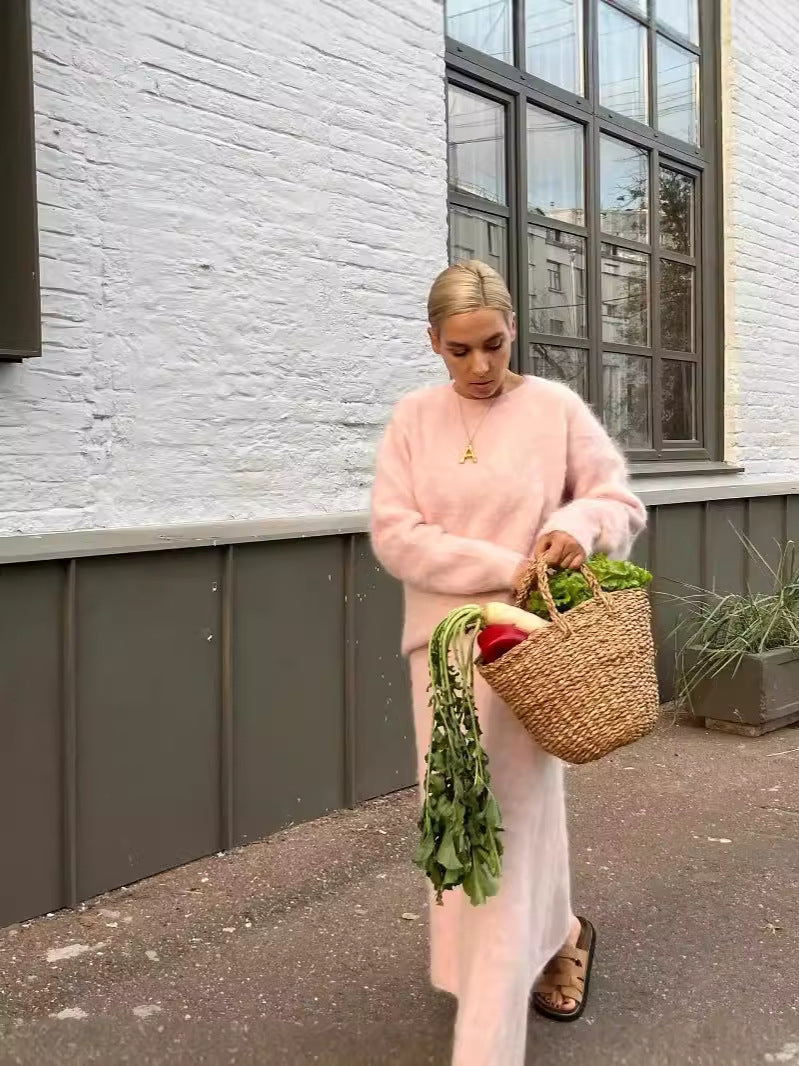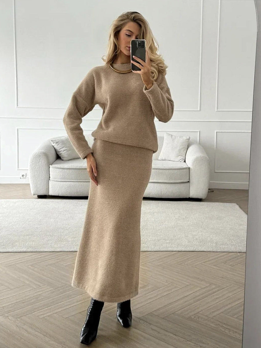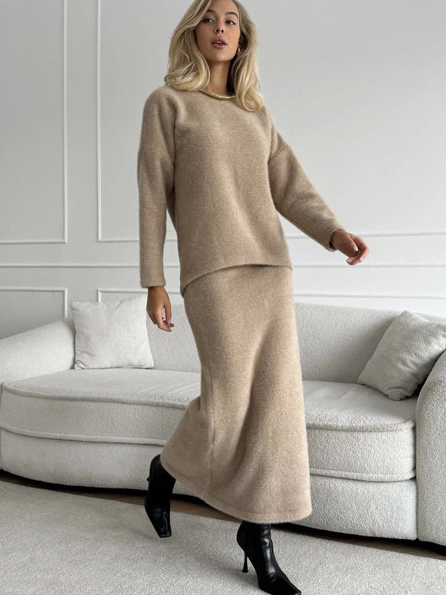 Elegant Soft Thickened Sweater Fishtail Skirt Two Piece Set