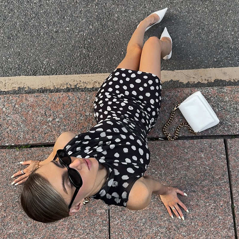 Mesh Polka Dot Print Faux Two Piece Sheath Dress