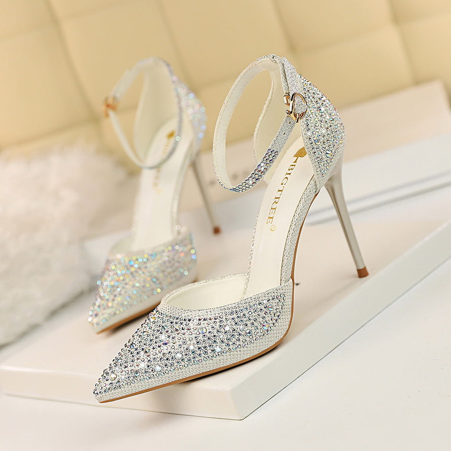 Sweet Stiletto Strap Shiny Rhinestone High Heel